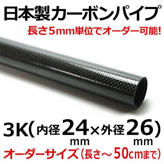 3Kカーボンパイプ 内径24mm×外径26mm×50cm以下オーダー 1本