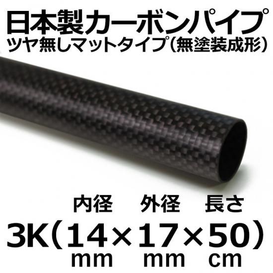 3Kマットカーボンパイプ 内径14mm×外径17mm×長さ50cm 1本