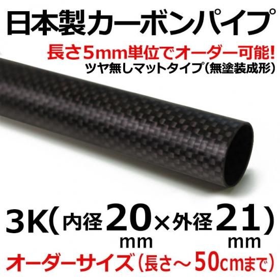 3Kマットカーボンパイプ 内径20mm×外径21mm×50cm以下オーダー 1本