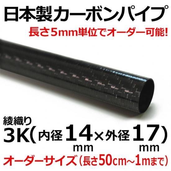 3K綾織りカーボンパイプ 内径14mm×外径17mm×1m以下オーダー 1本