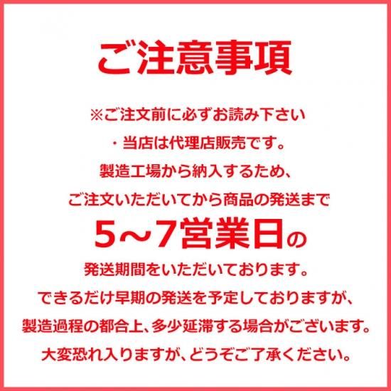 製造工場から納入するため、商品の発送には5~7営業日の発送期間をいただいております。(営業日とは、土曜・日曜・祝日を除く、平日を指します)